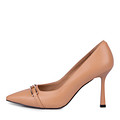 Кожаные туфли в классическом стиле. Мягкая кожаная подкладка и стелька из шевро отвечают за хороший воздухообмен и идеальную посадку пары. Изящныйкаблук высотой 90 мм обеспечивает оптимальное распределение нагрузки по стопе. Модель дополнена лаконичным декором в носочной части.