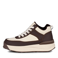 Практичные черно-белые кожаные женские кеды на высокой подошве. Подкладка и стелька изготовлены из мягкого ворсина. Модель с прочной шнуровкой и практичной петлей на вороте. Пара хорошо впишется в образы с пуховиком, бомбером и пальто.