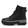 Комфортные черные ботинки на массивной подошве. Верх изготовлен из мелкозернистой натуральной кожи. Подкладка и стелька из пушистого натурального меха хорошо защищают стопы от холода. Рифленая подошва из материала ТЭП гарантирует устойчивость на любых покрытиях, а высокий рант обеспечивает защиту от влаги. Модель с прочной шнуровкой и удобной застежкой на молнию.