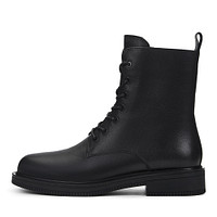 Женские ботинки выполнены из гладкой мягкой кожи оттенка «белый шепот» и станут акцентом в любом повседневном образе. Дуэтом выступают контрастная шнуровка с матовыми металлическими люверсами и износостойкая подошва в тон. Подкладка из ворсина способствует комфортной температуре внутри обуви. Крупная кожаная петля на голенище служит для удобства надевания.