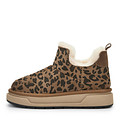 Уютные короткие угги с модным анималистичным принтом. Верх, декорированный натуральным мехом, комбинирует бархатистый спилок с гладкими вставками из кожи. Подкладка и стелька дополнительно утеплены шерстью. Высокая подошва из ТЭП гарантирует оптимальную поддержку стоп и устойчивость на любой поверхности.