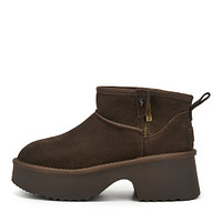 Футуристичные ботинки в стиле угги. Пара рыжего цвета сшита из бархатистого спилка. Внутренняя подкладка зимней обуви из натуральной шерсти, даже в сильный мороз ноги остаются сухими и комфортно тёплыми. Задник модели, с петлёй для удобного надевания, декорирован патчем с логотипом бренда. Подошва из ТЭП высотой 56 мм.