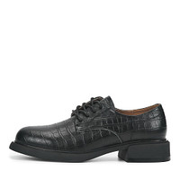 Лаконичные чёрные полуботинки. Основной материал — мягкая кожа из спилка. Небольшой устойчивый каблук высотой 35 мм обеспечивает оптимальную нагрузку на стопы. Гибкая и прочная резиновая подошва отличается прочностью и долговечностью.