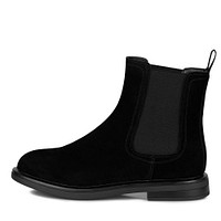 Практичные кожаные черные челси с гладкой фактурой. Подкладка и стелька изготовлены из ворсина. Утолщенная резиновая подошва поддерживает стопы в оптимальном положении и добавляет комфорта при движении по любым покрытиям даже в дождь. Эластичные вставки обеспечивают идеальную посадку обуви.