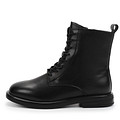 Повседневные черные ботинки. Верх выполнен из гладкой кожи из спилка с влагонепроницаемым покрытием. Модель утеплена мягким ворсином, обеспечивающим комфорт стоп в любую погоду. Плотная подошва из резины отличается прочностью и хорошим сцеплением с поверхностью.
