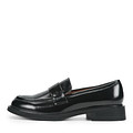 Классические чёрные туфли из глянцевой кожи из спилка в стиле smart casual. Резиновая подошва с небольшим каблуком отличается прочностью и оптимально распределяет нагрузку на стопы. Дизайн универсален и лаконичен, подходит для дополнения делового и повседневного образа.