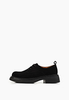 Минималистичные велюровые полуботинки в шоколадном оттенке. Сочетание бархатистой текстуры верха и стельки и подкладки, выполненных из кожи, делает модель комфортным и стильным. Шнуровка помогает оптимально зафиксировать модель на ноге, а резиновая подошва отличается прочностью и устойчивостью к непогоде.