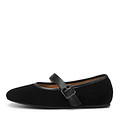 Лаконичные черные балетки Mary Jane сшили из бархатистого велюра. Модель с невысоким каблуком и миндалевидным мысом фиксируется на ноге ремешком квадратной пряжкой. Такая обувь впишется в любой casual-образ, сочетаясь и с джинсами, и с платьем, и с классическими брюками.
