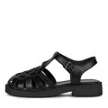 Черные кожаные сандалии. Изящные ремешки с подкладкой из мягкой искусственной кожи бережно фиксируют пару на ноге. Легкая подошва из материала ТЭП формирует оптимальную поддержку и устойчивость. Пара идеально впишется в образы для жаркой погоды.