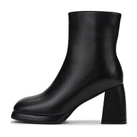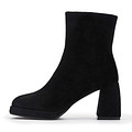Стильные черные ботильоны. Материал верха - женственный велюр. Подкладка и стелька утеплены мягким ворсином. Утолщенная резиновая подошва обеспечивает устойчивость на любой поверхности. Фигурный широкий каблук высотой 8,5 см грамотно распределяет нагрузку на стопы.