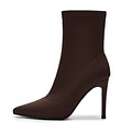 Женственные темно-коричневые ботильоны-чулки. Верх выполнен из прочного текстиля. Подкладка и стелька утеплены мягким ворсином. Гибкая и прочная подошва из тунита гарантирует оптимальную поддержку стоп. Тонкий устойчивый каблук высотой 10 см грамотно распределяет нагрузку на ноги.