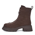 Классические коричневые ботинки с высокой шнуровкой. Верх выполнен из прочного спилка с бархатистой фактурой. Подкладка и стелька утеплены мягким ворсином. Широкая резиновая подошва с выраженными протекторами обеспечивает надежное сцепление с поверхностью. Модель с удобной застежкой на молнию.