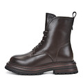 Классические коричневые ботинки в стиле высоких дерби. Верх выполнен из гладкой кожи из спилка. Подкладка и стелька утеплены натуральной шерстью. Утолщенная подошва из материала ТЭП отличается легкостью и устойчивостью на любой поверхности. Модель фиксируется шнуровкой и удобно застегивается на молнию.