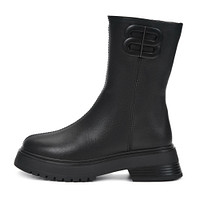 Минималистичные черные полусапоги с эффектной декоративной пряжкой. Верх выполнен из прочного бархатистого спилка. Подкладка и стелька утеплены натуральной шерстью для оптимальной терморегуляции стоп на улице и в помещении. Высокая подошва из материала ТЭП с выраженными протекторами отличается легкостью, морозоустойчивостью и надежным сцеплением с любой поверхностью.