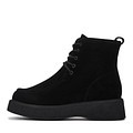 Минималистичные черные ботинки со шнуровкой. Верх выполнен из женственного велюра, подкладка и стелька утеплены натуральной шерстью. Боковая молния облегчает процесс фиксации пары. Высокая подошва из материала ТЭП обеспечивает надежную защиту от влаги и холода и устойчива на любой поверхности.