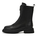 Женские ботинки чёрного цвета выполнены из кожи из спилка. Модель дполнили молнией спереди и петлёй на заднике для комфортного надевания. Материал внутренней подкладки - натуральная шерсть, которая удерживает тепло даже в самые сильные морозы. Подошва из резины не проскальзывает и не деформируется.
