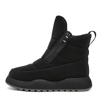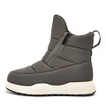 Дутики, утепленные шерстью, выполнили из непромокаемого текстиля. Модель с герметичной молнией сбоку и петлёй на заднике установили на широкую резиновую подошву. Цвет зимней пары - серый.