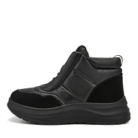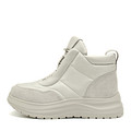 Футуристичные дутики изготовили из комбинированных материалов: непромокаемый текстиль 80% и прочный спилок 20%. Цвет пары - серый. Внутренняя подкладка зимней обуви из натуральной шерсти, которая обеспечивает комфорт при низких температурах, а подошва из ТПУ высотой 55 мм добавляет устойчивости и защищает от холода снизу.