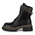 Стильные ботинки с высокой шнуровкой в черно-зеленом исполнении. Верх выполнен из кожи из спилка с влагонепроницаемым покрытием, подкладка и стелька - из мягкого ворсина. Высокая тракторная подошва из материала ТЭП отличается легкостью, гибкостью и надежным сцеплением с поверхностью. Модель фиксируется шнуровкой и удобно застегивается на молнию.