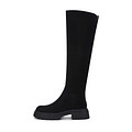 Эффектные черные ботфорты из бархатистого спилка. Подкладка и стелька утеплены мягкой натуральной шерстью для оптимальной терморегуляции стоп. Высокая резиновая подошва с выраженными протекторами отличается прочностью и надежным сцеплением с поверхностью.