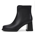 Классические черные ботильоны с архитектурным вырезом на голенище. Верх выполнен из гладкой кожи из спилка с влагонепроницаемым покрытием. Подкладка и стелька утеплены мягким ворсином. Утолщённая резиновая подошва отличается прочностью и хорошим сцеплением с поверхностью. Устойчивый блочный каблук высотой 7,8 см грамотно распределяет нагрузку на стопы.