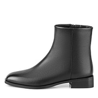 Лаконичные кожаные ботинки с прямоугольной формой носочной части. Модель с мягкой подкладкой и стелькой, выполненными из ворсина, гарантирует комфорт стоп. Широкий каблук высотой 33 мм обеспечивает оптимальное распределение нагрузки. Эффектная пара дополнит любой образ с брюками, платьями и джинсами.