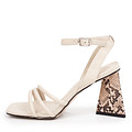 Акцентные летние босоножки бежевого цвета. Модель дополнена архитектурным устойчивым каблуком с анималистичным принтом. Верх, подкладка и стелька выполнены из мягкой искусственной кожи. Изящный ремешок с классической застежкой хорошо фиксирует обувь на ноге.