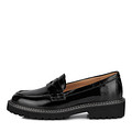 Базовые черные женские лоферы на толстой подошве. Материал верха — кожа спилка с глянцевой фактурой. Внутренняя часть демисезонной обуви выполнена из натуральной кожи. Материал подошвы — легкий вспененный каучук с хорошими амортизирующими свойствами. Модные лоферы отлично дополнят гардероб в деловом или casual-стиле.