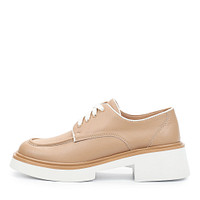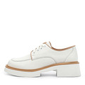 Минималистичные женские полуботинки белого цвета. Основной материал — кожа матовой фактуры. Стелька выполнена из натуральной кожи. Массивная подошва обеспечивает хорошую устойчивость. Контрастная шнуровка отлично фиксирует стопу. Кожаная демисезонная обувь прекрасно впишется в повседневный и деловой гардероб.