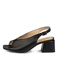 Трендовые черные босоножки на каблуке с квадратным мысом. Верх летней обуви выполнен из кожи шевро с матовой фактурой. Подкладка — из натуральной кожи. Мягкая перфорированная стелька из шевро обеспечивает дополнительный комфорт стоп. Модель с неглубоким фигурным вырезом и устойчивым каблуком высотой 57 мм.