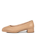 Бежевые кожаные туфли с устойчивым каблуком. Подкладка из натуральной кожи и сквозная перфорация обеспечивают идеальную вентиляцию. Мягкая перфорированная стелька из нежной кожи шевро отвечает за комфорт стоп в течение всего дня. Широкий каблук высотой 30 мм и широкая мысочная часть летней обуви формируют естественное распределение нагрузки и оптимальную поддержку стопы.