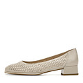 Бежевые кожаные туфли с устойчивым каблуком. Подкладка из натуральной кожи и сквозная перфорация обеспечивают идеальную вентиляцию. Мягкая перфорированная стелька из нежной кожи шевро отвечает за комфорт стоп в течение всего дня. Широкий каблук высотой 30 мм и широкая мысочная часть летней обуви формируют естественное распределение нагрузки и оптимальную поддержку стопы.
