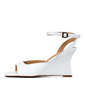 Летние босоножки на танкетке из натуральной кожи с квадратным носом и ремешком вокруг щиколотки. Удобные и стильные, подходят для повседневной носки, праздников, танцев и работы. Молочные босоножки с бежевой подошвой легко комбинируются с юбками, платьями и брюками, подходят для отдыха и пляжа. Каблук с набойкой и противоскользящая подошва обеспечивают комфорт на протяжении всего дня. Подходят для широкой и средней полноты ног.