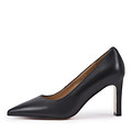 Графичные черные туфли из гладкой натуральной кожи. Комфорт стоп гарантируют кожаная подкладка и стелька со смягчителем. Устойчивый каблук высотой 84 мм формирует оптимальное распределение нагрузки.  Модель отлично дополнит повседневные и праздничные образы.