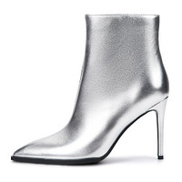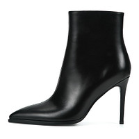 Изящные черные кожаные ботильоны. Пара утеплена мягким ворсином. Каблук высотой 96 мм формирует оптимальный уровень поддержки. Модель с удобной застежкой на молнию.