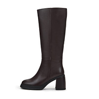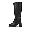 Минималистичные высокие сапоги в базовом черном оттенке. Кожаный верх надежно защищает ноги от влаги и холода. Подкладка и стелька из натурального меха сохраняет тепло. Утолщенная резиновая подошва обеспечивает отличное сцепление с любой поверхностью. Широкий устойчивый каблук высотой 80 мм грамотно распределяет нагрузку на стопы. Лаконичный дизайн с округлым мысом выглядит женственно без ущерба комфорту.
