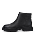 Лаконичные женские ботинки в черном цвете. Верх выполнен из зернистой натуральной кожи. Пара утеплена мягким ворсином. Утолщенный ворот бережно поддерживает зону щиколоток. Гибкая подошва из материала ТЭП отличается легкостью и хорошим сцеплением с поверхностью. Модель удобно застегивается на липучку велькро.