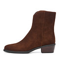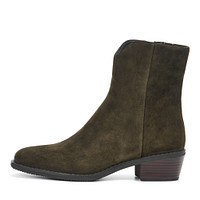Базовые велюровые ботинки со скошенным каблуком. Пара утеплена мягким ворсином. Утолщенная подошва из материала ТЭП поддерживает стопы в оптимальном положении. Широкая эластичная резинка надежно фиксирует ботинки на ноге. Практичная петля на вороте.