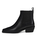 Лаконичные черные ботильоны с трендовым квадратным мысом. Верх из натуральной кожи практичен в уходе и надежно защищает ноги от ветра и влаги. Эластичные вставки плотно фиксируют пару на ноге, для удобства предусмотрена петля на задней части. Подкладка и стелька утеплены мягким ворсином. Утолщенная подошва из тунита отличается прочностью. Скошенный каблук в стиле казаков высотой 4,5 см устойчив и грамотно распределяет нагрузку на стопу.