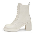 Эффектные молочные ботильоны с акцентной шнуровкой. Натуральная кожа верха надежно защищает от влаги и ветра. Подкладка и стелька утеплены ворсином. Молния ускоряет процесс надевания обуви. Плотная резиновая подошва отличается прочностью и хорошей амортизацией ударной силы на стопы. Широкий каблук высотой 7 см устойчив и грамотно распределяет нагрузку.