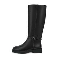 Коричневые сапоги на невысоком каблуке выполнили из натуральной кожи. Зимнюю пару с широким голенищем украсили ремешком, регулируемым металлической пряжкой на щиколотке. Материал подкладки - ворсин, а стельки - натуральный мех. Резиновая подошва обеспечивает надёжное сцепление с любой поверхностью.