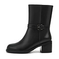 Полусапоги выполнили из мелкозернистой натуральной кожи. Щиколотку подчеркнули ремешком с квадратной пряжкой. Материал подкладки - натуральная шерсть, которая надежно защищает от холода. Пару с миндалевидным мысом поставили на каблук высотой 64 мм. Резиновая подошва бережно амортизирует и поддерживает стопу.
