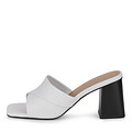 Трендовые белые кожаные сабо с квадратной формой мыска. Подкладка и стелька, выполненные из нежной кожи шевро, гарантируют особый комфорт стоп. Утолщенная подошва из тунита отличается прочностью. Широкий каблук высотой 79 мм обеспечивает равномерное распределение нагрузки по стопе.