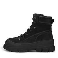 Бежевые массивные ботинки из бархатистого спилка. Вставки из современной искусственной кожи создают стильную игру фактур. Подкладка и стельки модели утеплены натуральной шерстью. Плотная подошва из материала ТЭП адаптируется под движения стопы при ходьбе.