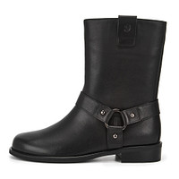 Полусапоги в шоколадном оттенке выполнили из бархатистого спилка. Голенище декорировали ремешками с кольцом и металлическими заклёпками. Подкладка и стелька из ворсина. Прочная резиновая подошва надежно защищает от влаги и обеспечивает уверенный шаг на любой поверхности