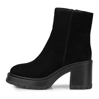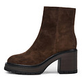 Женские велюровые ботильоны трендового шоколадного оттенка. Подкладка и стелька из мягкого натурального меха надежно защищают стопы от холода. Графичная подошва из материала ТЭП обеспечивает оптимальную поддержку и усточивость. Широкий каблук высотой 87 мм способствует комфортному распределению нагрузки по стопе. Модель с застежкой на молнию и эластичной вставкой на голенище.