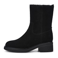 Практичные коричневые полусапоги из спилка с бархатистой фактурой. Пара утеплена густым натуральным мехом, обеспечивающим стопам комфорт в холодную погоду. За идеальную устойчивость на любых покрытиях отвечает рифленая подошва из материала ТЭП. Застежка на молнию, эластичная вставка на голенище.