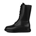 Эффектные черные полусапоги из гладкой натуральной кожи. Модель с эффектной высокой шнуровкой и удобной застежкой на молнию. Пара утеплена густым натуральным мехом, обеспечивающим ногам комфорт в холодную погоду. За идеальную устойчивость на любых покрытиях отвечает рифленая подошва из материала ТЭП.