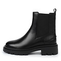 Базовые женские челси выполнены из гладкой натуральной кожи черного цвета. Эта пара на все случаи жизни. Массивная, но легкая подошва дополнена глубоким протектором, который дарит уверенность на скользкой дороге. Подкладка из бархатистого ворсина комфортно сохраняет тепло. Для удобства надевания предусмотрена кожаная петля на голенище.