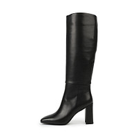 Высокие женские сапоги на устойчивом каблуке. Пара выполнена из гладкой натуральной кожи и утеплена мягким ворсином. Модель с практичной застежкой на молнию и гибкой подошвой из резины, гарантирующей надежное сцепление с поверхностью.